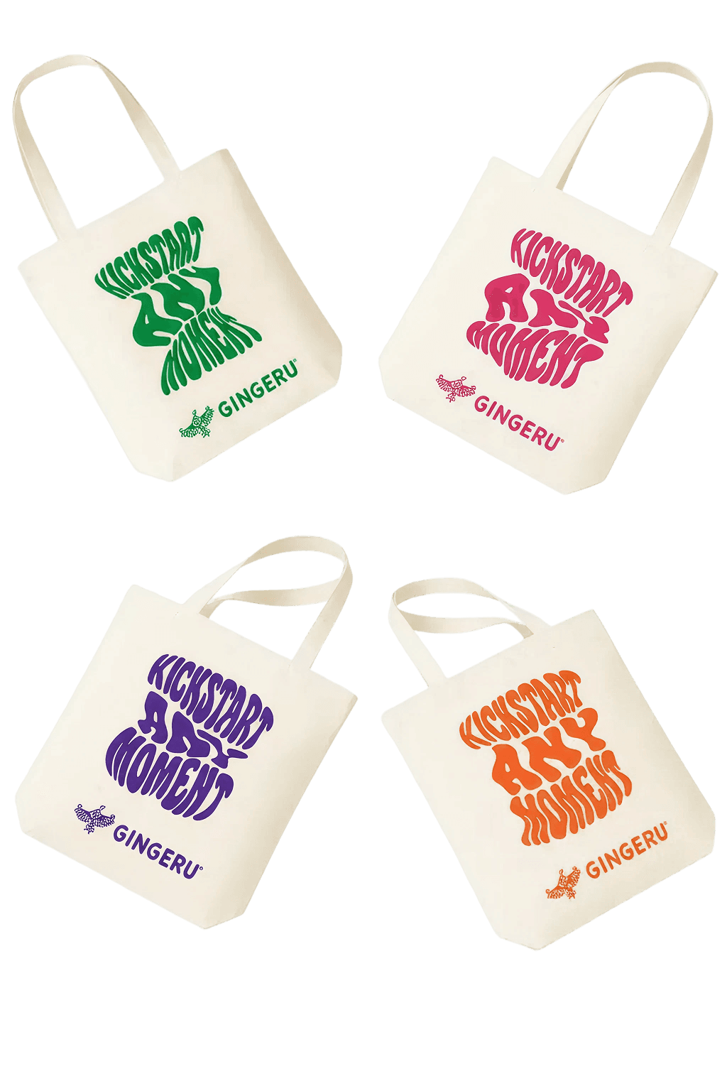 Deze limited edition Gingeru® totebag is voor iedereen die elke dag met een frisse kickstart wil beginnen. Je krijgt één van de vier designs — welke? Dat blijft een verrassing. Misschien fel oranje, misschien bold paars… of misschien een kleur die perfect matcht met jouw vibe.